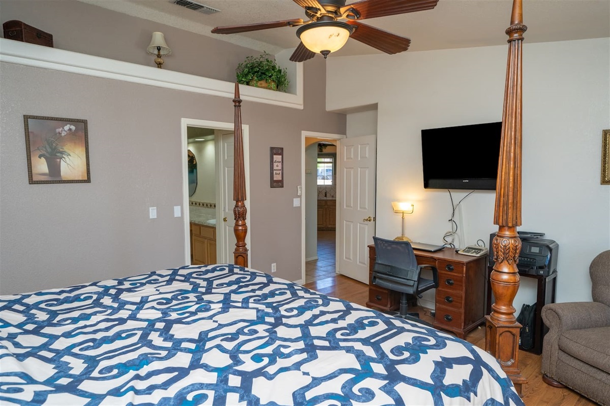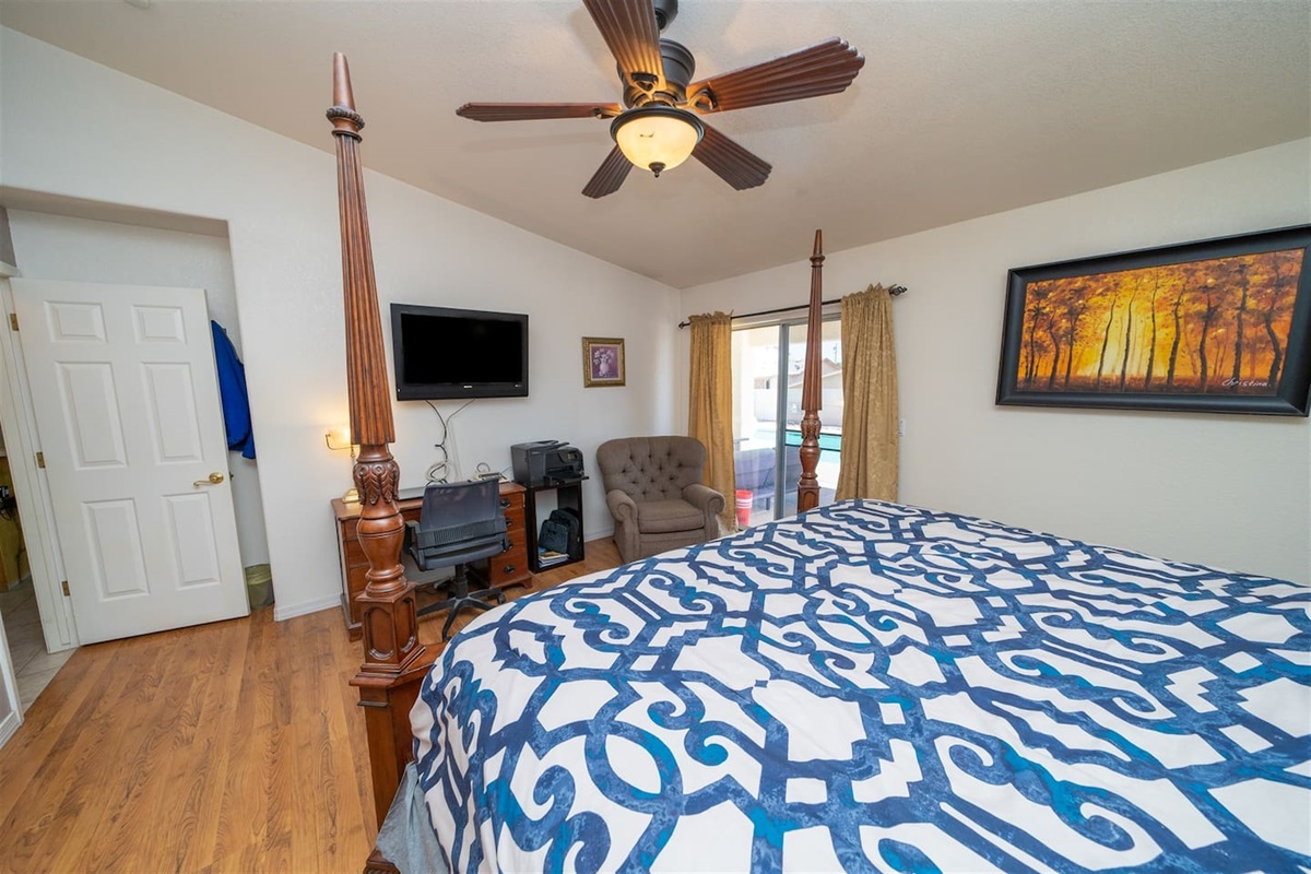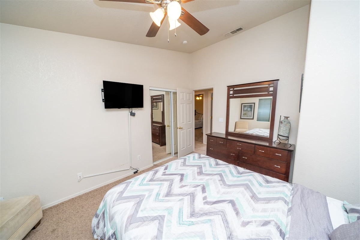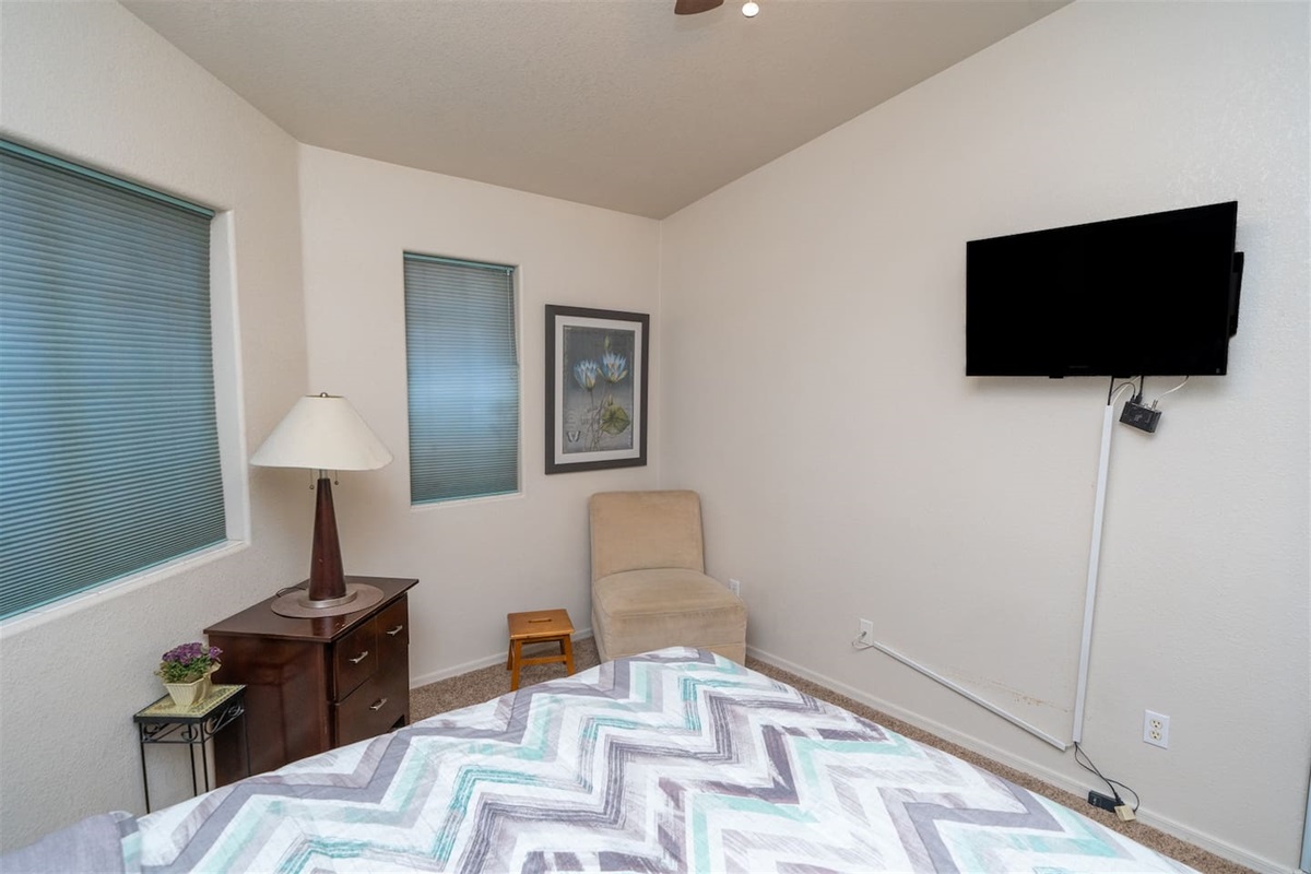 5 Bedrooms • 3 Bathrooms 3 Baths • Sleeps 8-12Designed to accommodate up to 12 guests (10 comfortably), this beautifully maintained property offers room to gather, relax, and recharge. The primary suite features a king bed, TV, and a private en-suite bathroom with a walk-in shower, Jacuzzi tub, and dual sinks—creating a true retreat after a day on the water. Additional guest rooms include two queen bedrooms with TVs, a twin room with two beds and TV, and a flexible fifth bedroom with a queen bed and twin futon—perfect for kids or extra guests. A convenient casita-style bathroom with walk-in shower adds privacy and comfort for larger groups, while the second guest bath offers a tub/shower combo with direct access to the pool area.