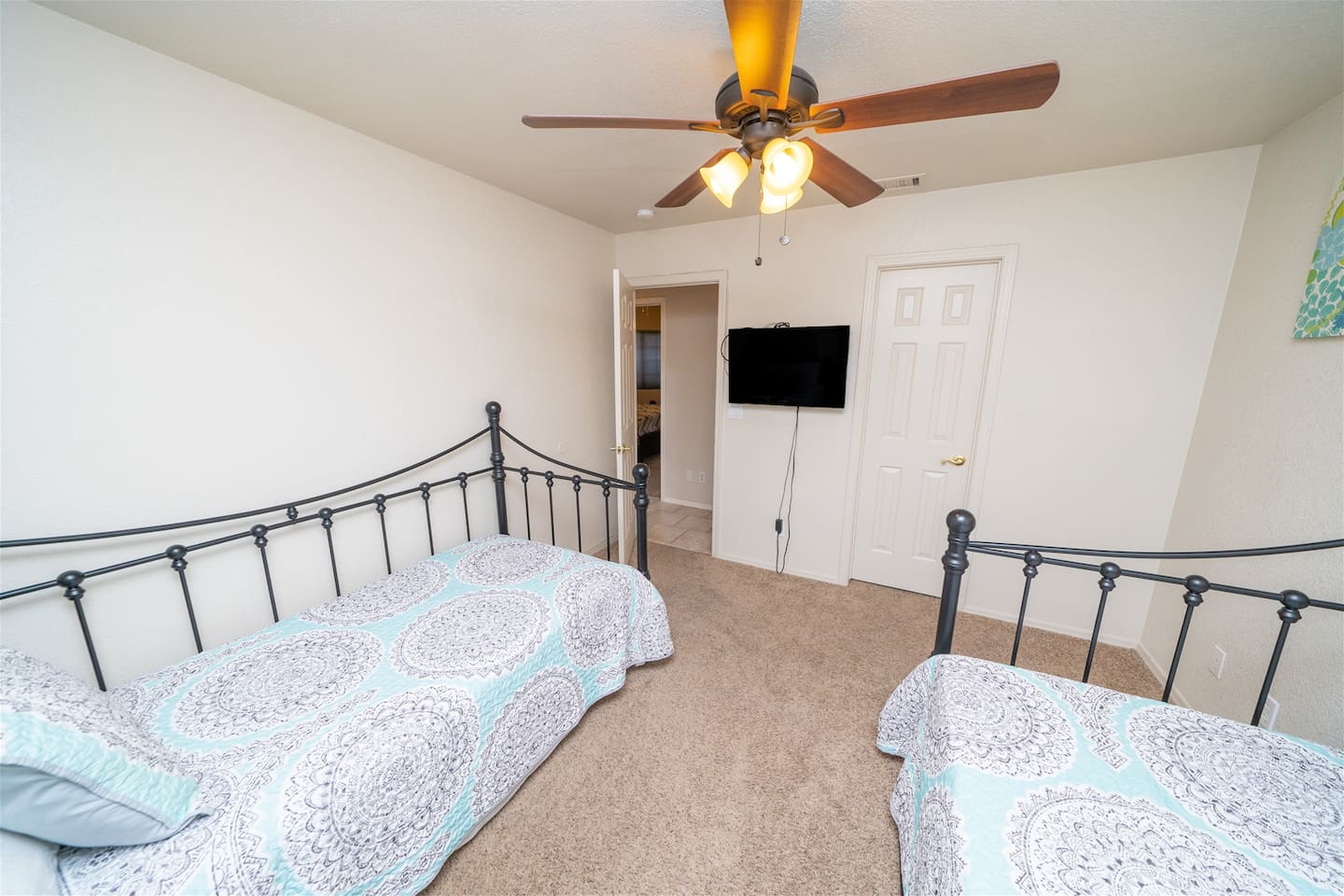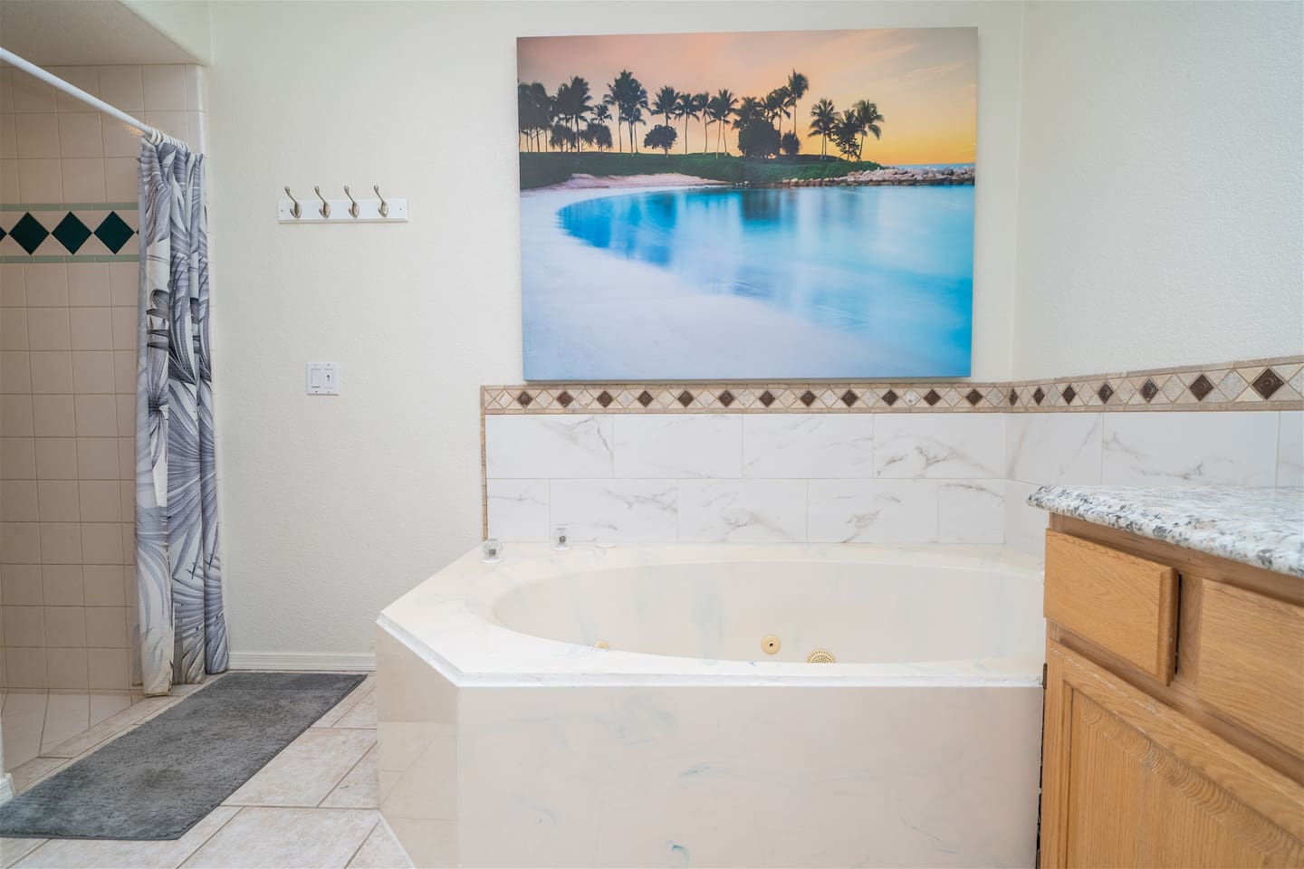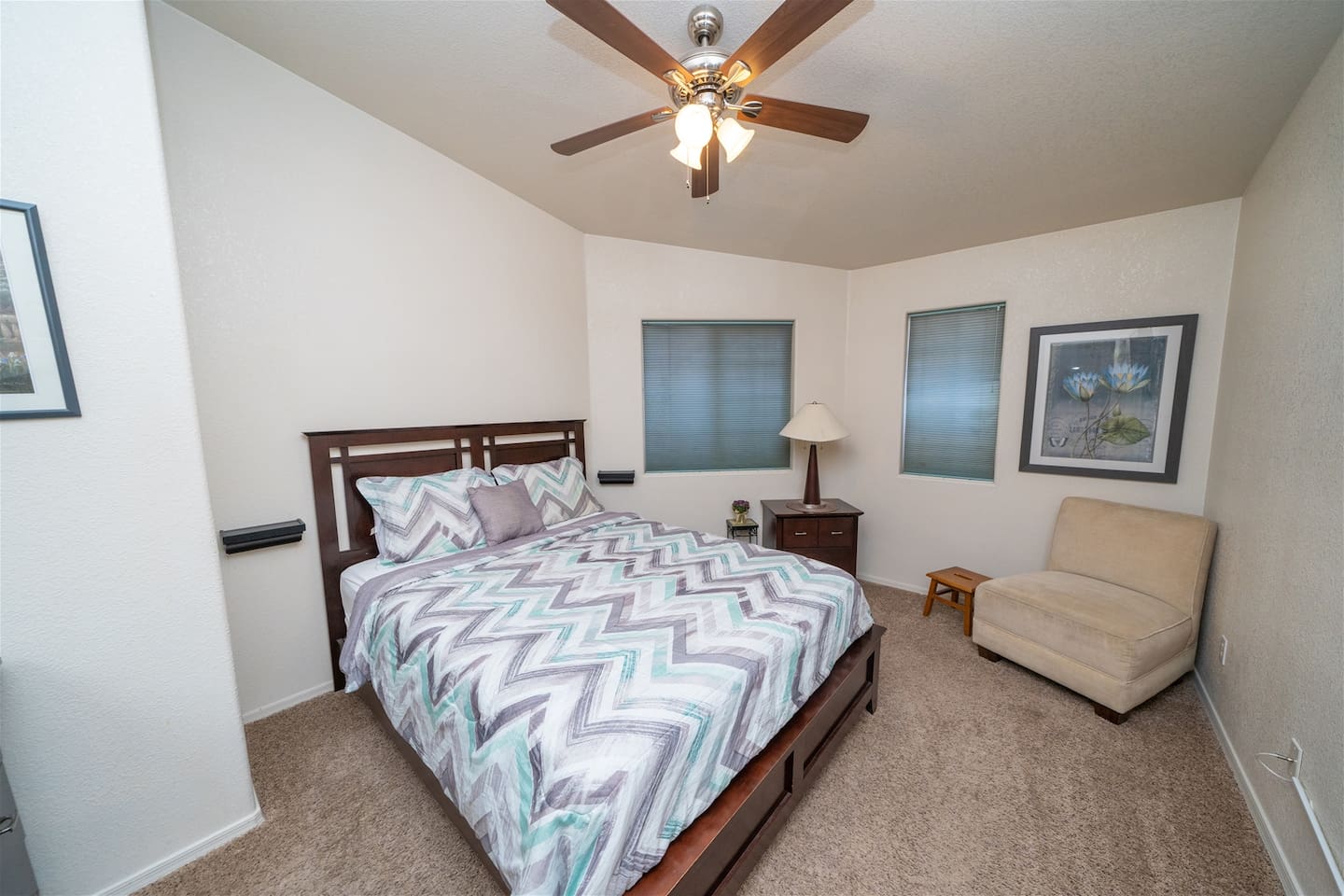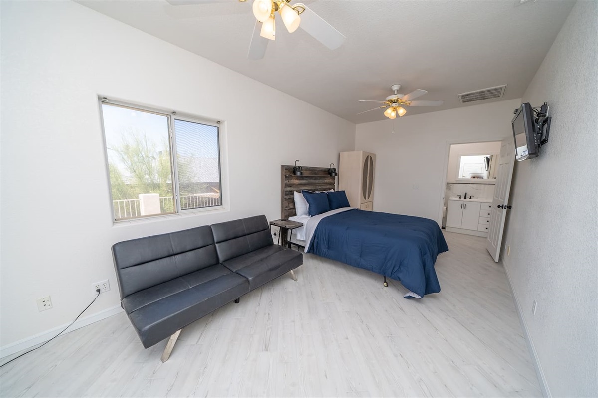 5 Bedrooms • 3 Bathrooms 3 Baths • Sleeps 8-12Designed to accommodate up to 12 guests (10 comfortably), this beautifully maintained property offers room to gather, relax, and recharge. The primary suite features a king bed, TV, and a private en-suite bathroom with a walk-in shower, Jacuzzi tub, and dual sinks—creating a true retreat after a day on the water. Additional guest rooms include two queen bedrooms with TVs, a twin room with two beds and TV, and a flexible fifth bedroom with a queen bed and twin futon—perfect for kids or extra guests. A convenient casita-style bathroom with walk-in shower adds privacy and comfort for larger groups, while the second guest bath offers a tub/shower combo with direct access to the pool area.