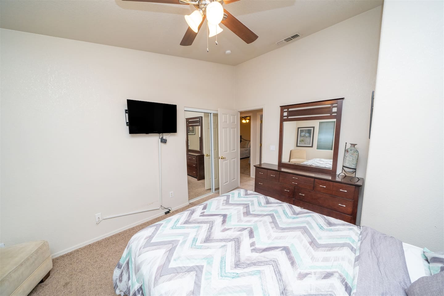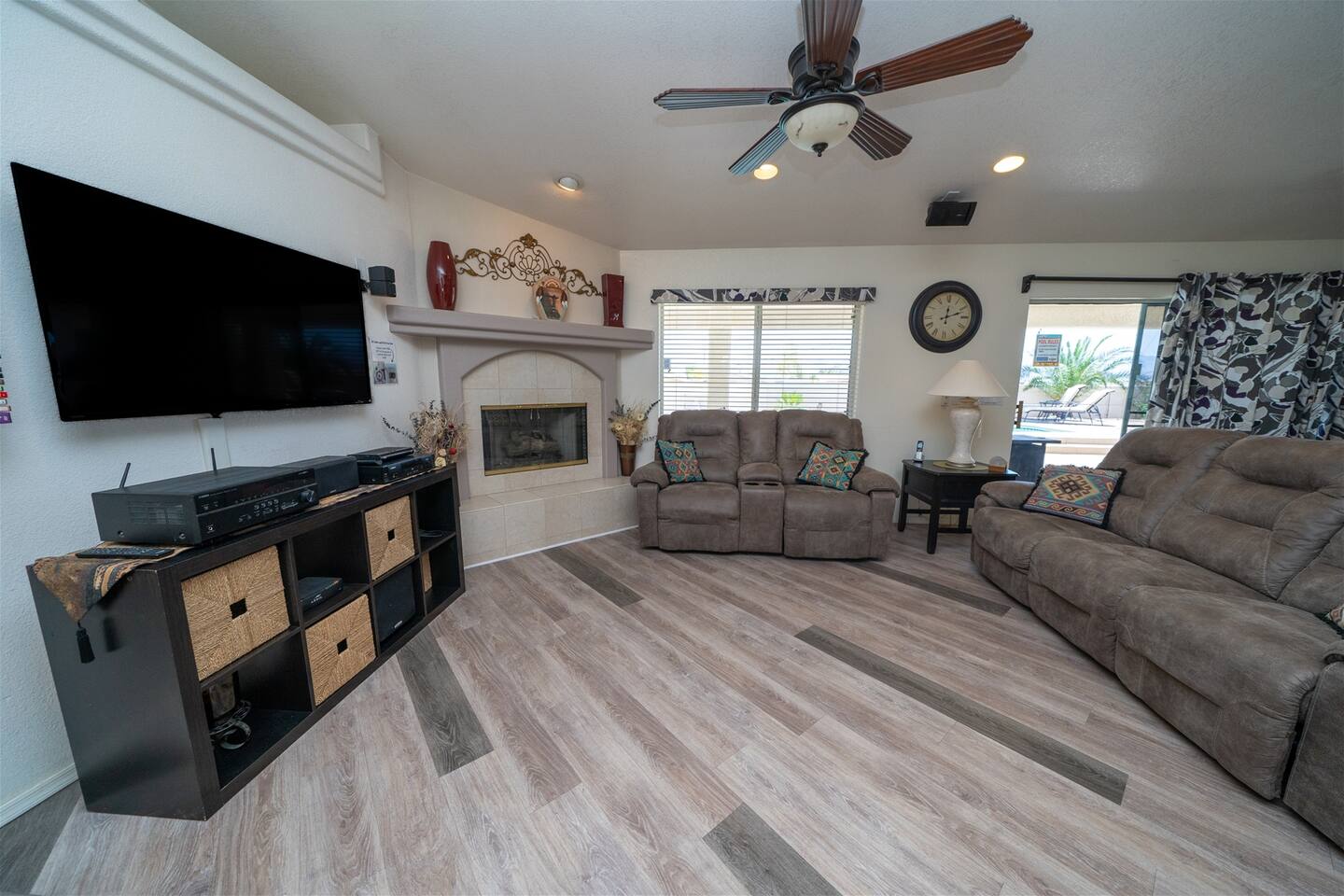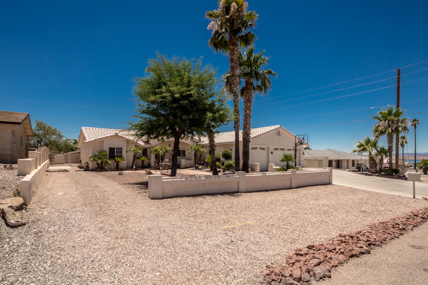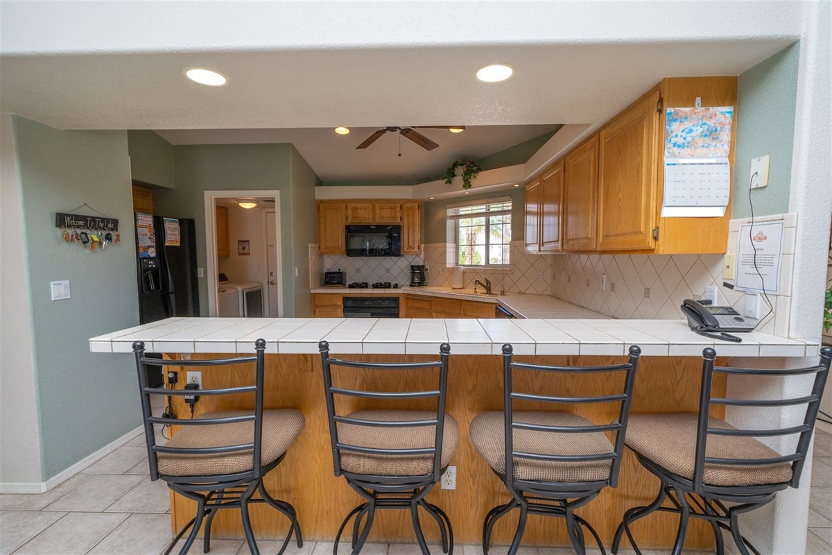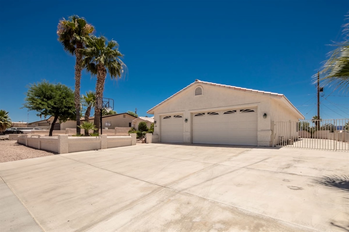Bringing boats, desert toys, or multiple vehicles? You’ll appreciate the three-car garage, side parking, front driveway space, and an EV electric car charger available for guest use. Two sets of washers and dryers make extended stays, large groups, and lake days incredibly convenient.